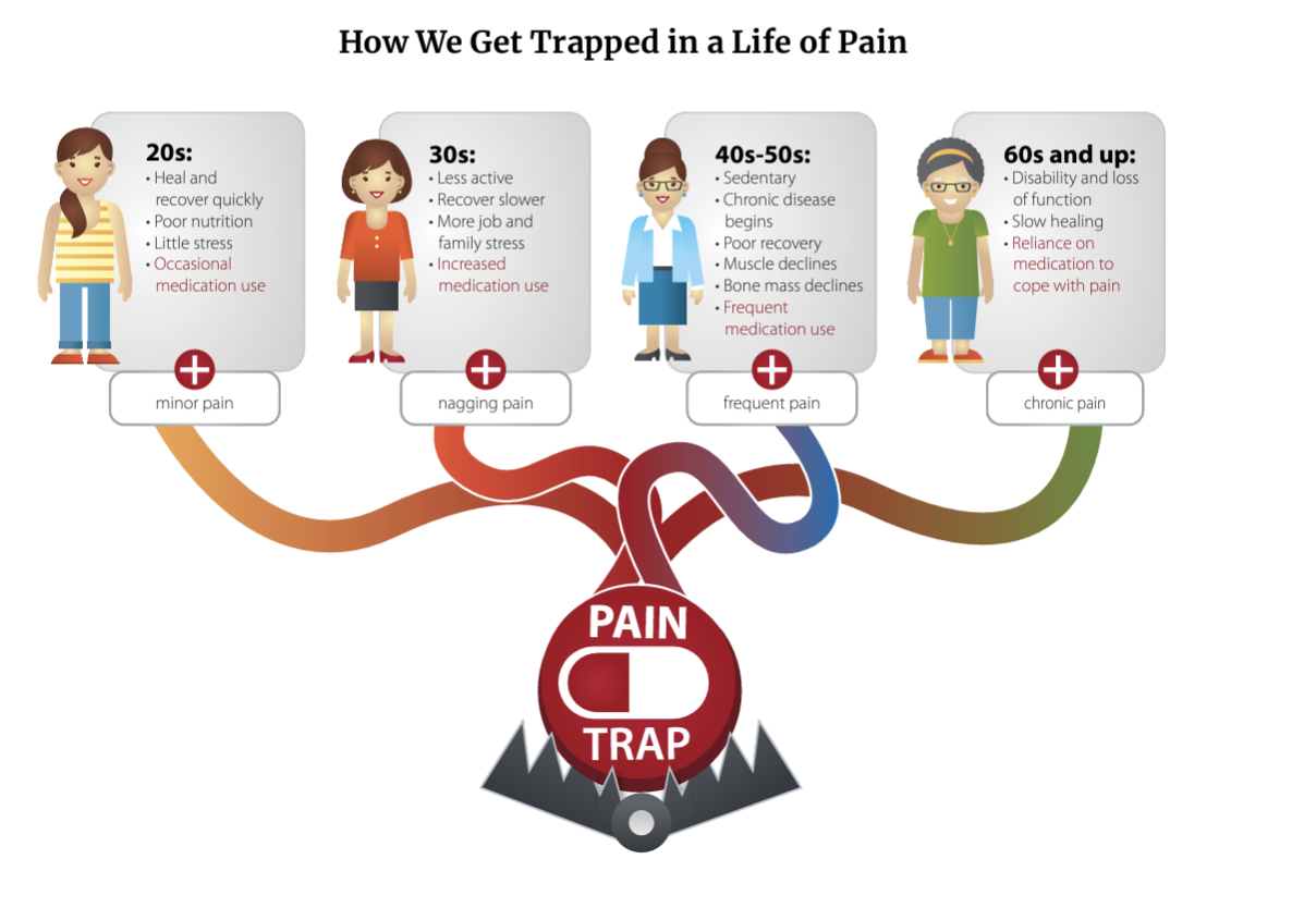 Before you reach for an over-the-counter or prescription medication to resolve your pain, consider this: what if there was a powerful medicine available that didn’t require a prescription or a trip to the drug store? Your diet, daily movement, and mental outlook can relieve pain, decrease inflammation and help your body heal quickly and completely. The human body has an amazing ability to maintain health when provided with the right signals. Think about it: The choices you make each day send signals to each of your cells that either promote health and healing, or damage and disease. When harmful signals are removed, and appropriate signals are enhanced, cells and organ systems can create healthy outcomes. Your food choices, physical function, and psychology have the greatest impact on your pain, inflammation and quality of life.