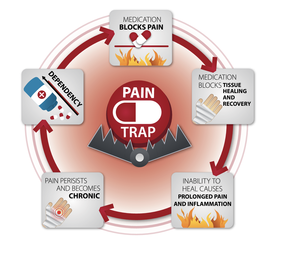 Pain is our body’s alarm system; it alerts us when something isn’t right. But how does the alarm get activated? Inflammation is the response of our body’s defense system to protect against infection and rebuild any damaged tissue. The normal inflammatory process activates pain receptors, sending a signal from the injury site to the brain. Your immune system springs into action, signaling immune cells to start walling off the injured area. New cells will then use collagen and glycoproteins to create new tissue. Finally, new collagen forms scar tissue, healing the wound.